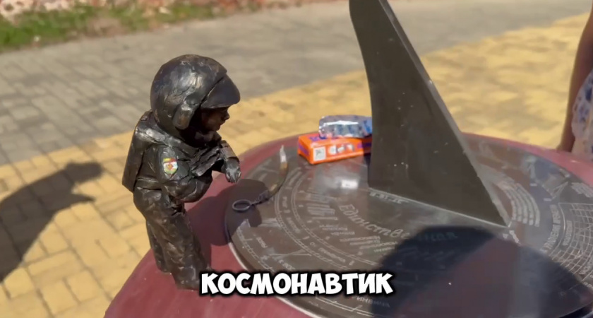 В Калуге новая работа скульптора Алины Фарниевой украсила территорию у школы номер пять. По словам директора учебного заведения Александра Колгана, горожане увидели по телевизору, как космонавтики придают городу особое очарование. Директор пришел к выводу, что школе тоже нужен свой Космонавтик, так как это одно из самых старых учебных заведений в городе, и в этом году у них выпускается уже сто пятьдесят второй раз.