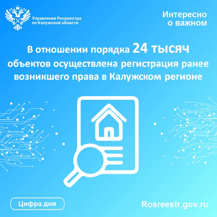В отношении порядка 24 тысяч объектов осуществлена регистрация ранее возникшего права в Калужском регионе