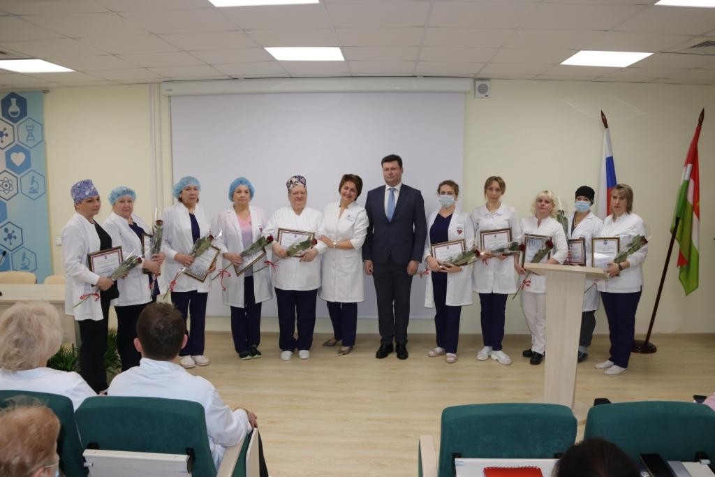 Глава городского самоуправления Калуги Юрий Моисеев поздравил с праздником сотрудников Калужской областной клинической больницы, вручил медсёстрам цветы и почётные грамоты.