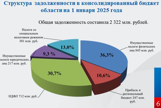 В прошлом году работа по взысканию долгов налогоплательщиков велась совместно с администрациями муниципалитетов, прокуратурой и следственных органов. За год задолженность в консолидированный бюджет Калужской области снизилась на 300 млн. рублей (на 11,4%) и составила 2 млрд. 322 млн. рублей.