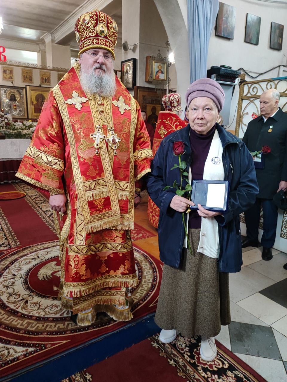 12 мая по окончании литургии епископ Козельский и Людиновский Никита вручил церковные награды благотворителям и прихожанам Казанского собора города Людиново.