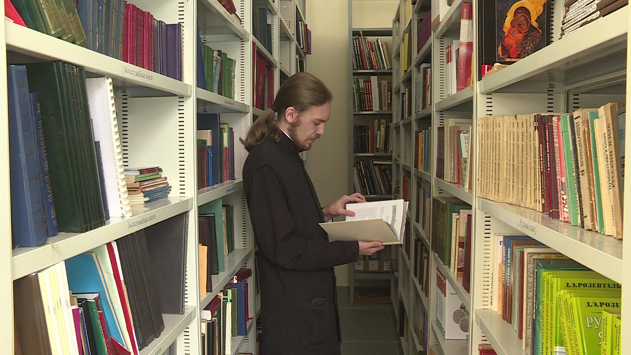 В библиотеке Калужской духовной семинарии хранится свыше 60 тысяч книжных экземпляров. Это не только учебные пособия для студентов, церковные энциклопедии и жития святых, но и светская литература - произведения русских и иностранных классиков. Сами же студенты здесь частые гости. Православная литература помогает в написании курсовых и дипломных работ, да и просто для приятного отдыха, рассказывает студент семинарии Алексей Иванов. С книжкой он не расстается ни на минуту. Среди любимых произведений - "Духовные беседы" Оптинского старца Ворсанафия.
