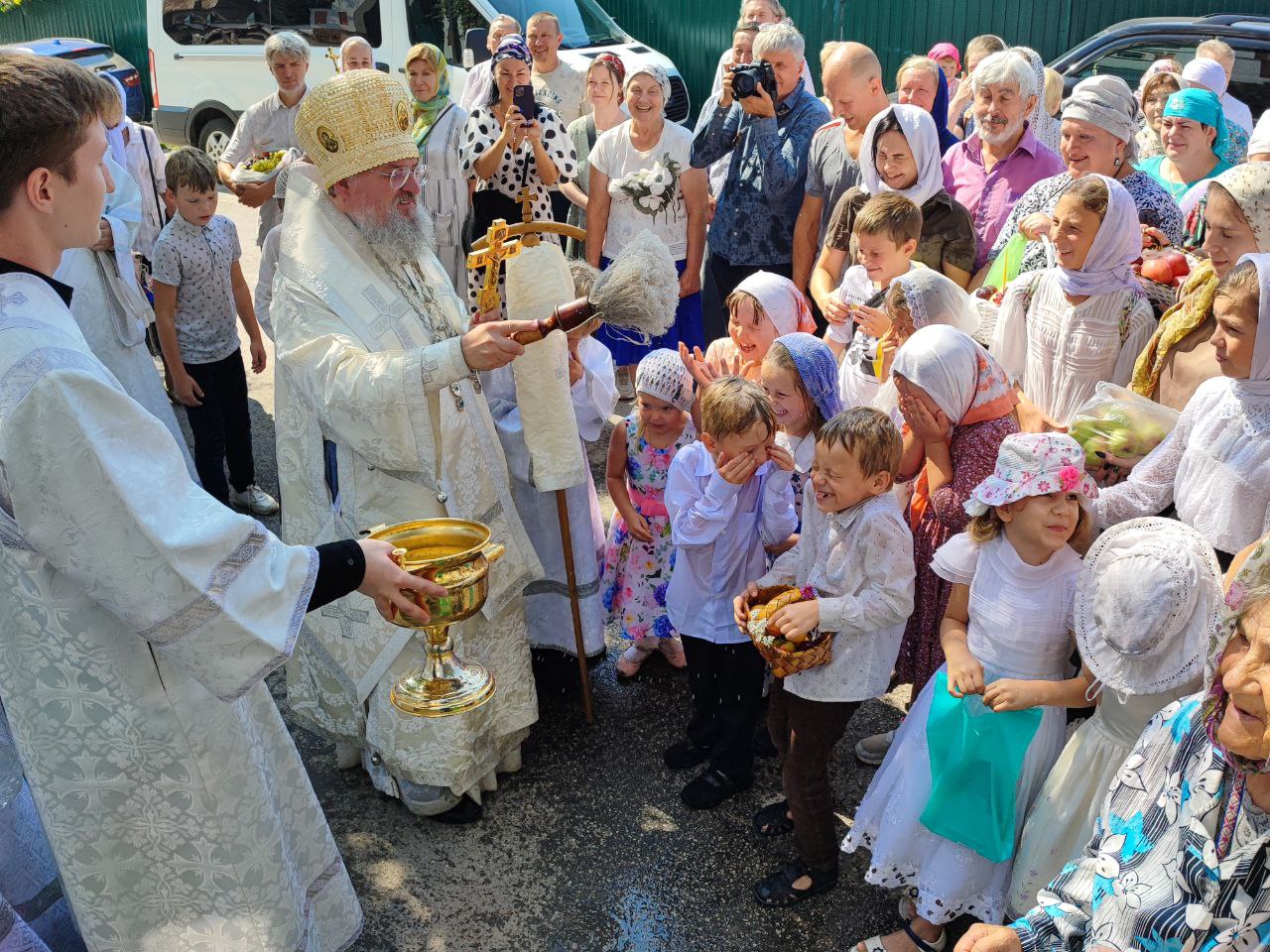 После отпуста литургии священнослужители совершили праздничный молебен и крестный ход вокруг храма, в завершении которого владыка обратился к богомольцам с архипастырским словом.