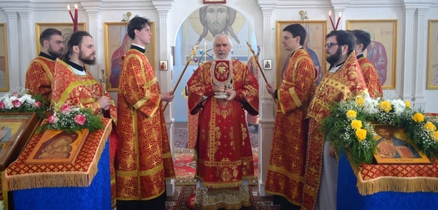Высокопреосвященнейшему владыке сослужили иеромонах Алексий (Щукин), иерей Павел Клинков - настоятель храма, протодиакон Алексий Хамтеев и диакон Алексий Кочубей.