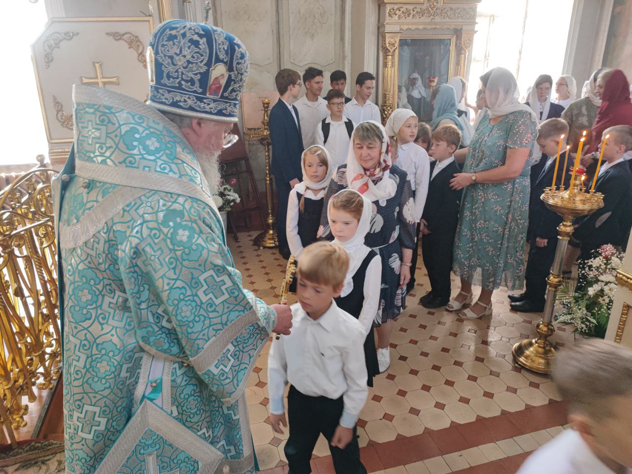 1 сентября Благовещенском храме города Козельска епископ Козельский и Людиновский Никита совершил молебен на начало нового учебного года в Козельской православной гимназии.