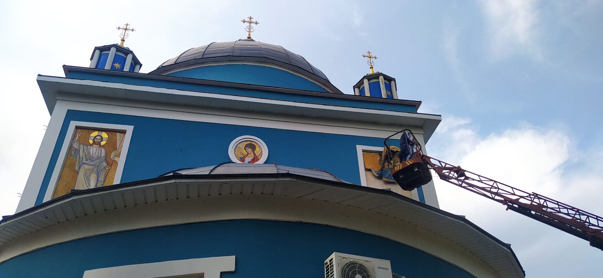 23 августа на фасаде храма в честь Смоленской иконы Божией Матери города Сухиничи была смонтирована последняя из семи мозаичных икон.