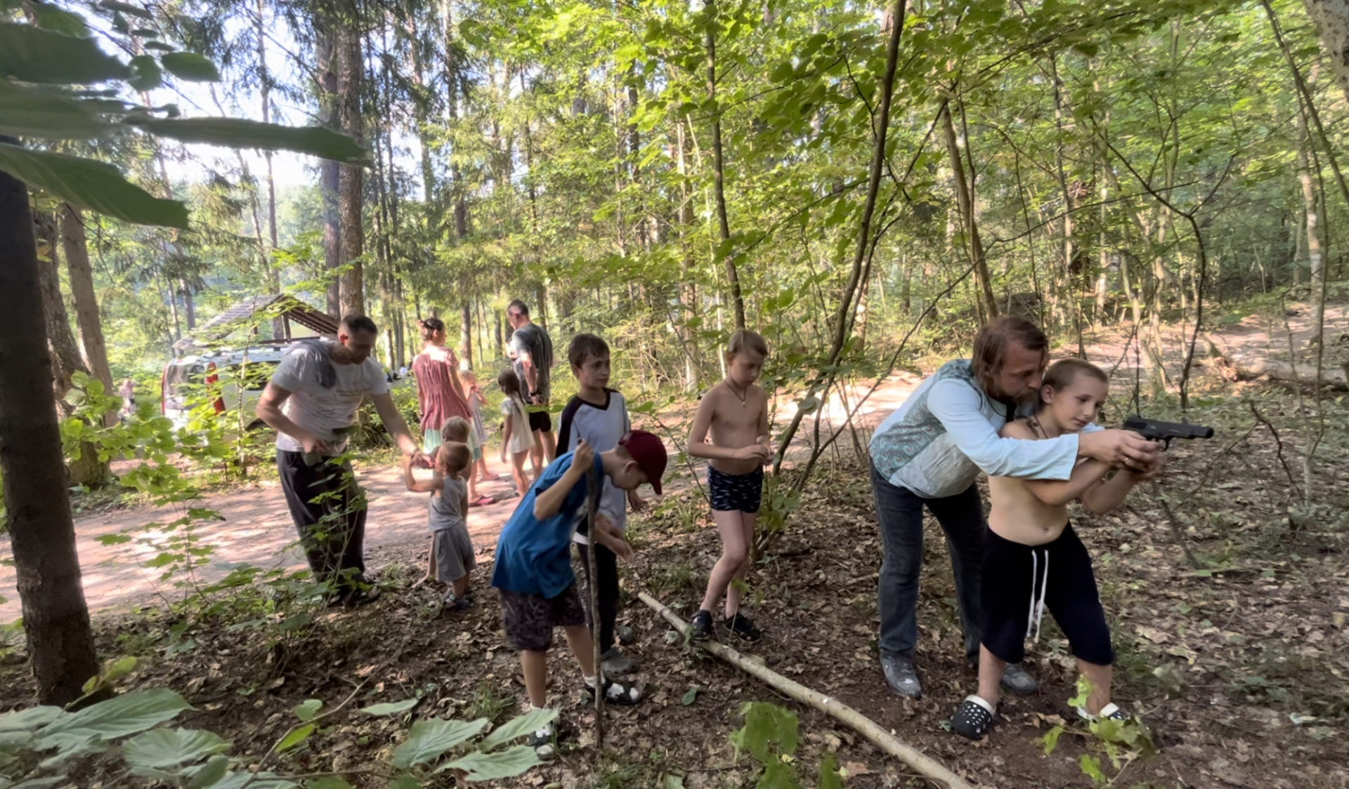 На месте пикника детей ждали активные игры: футбол, бадминтон, стрельба из пневматического пистолета и конечно же купание в чистом озере.