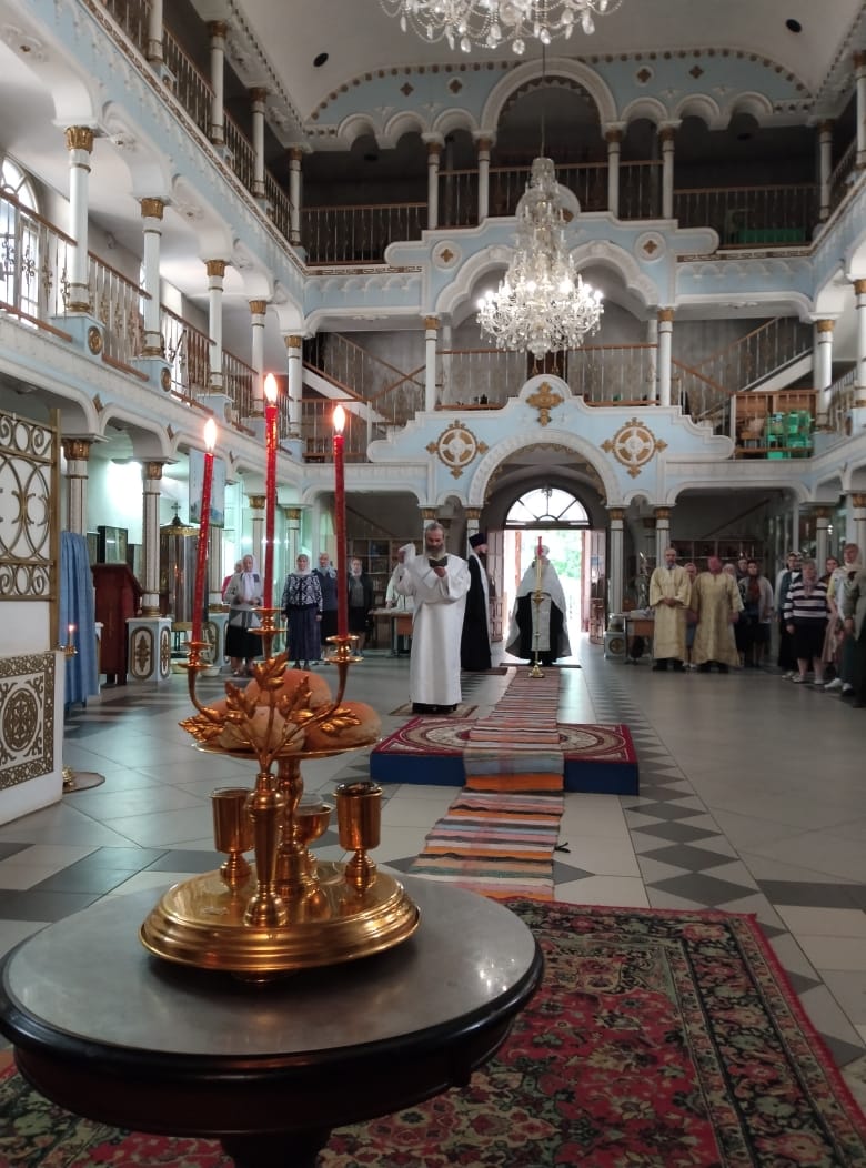 В Казанском соборе города Людиново накануне праздника, 24 мая 2023 года, вечером, было совершено всенощное бдение с литией,