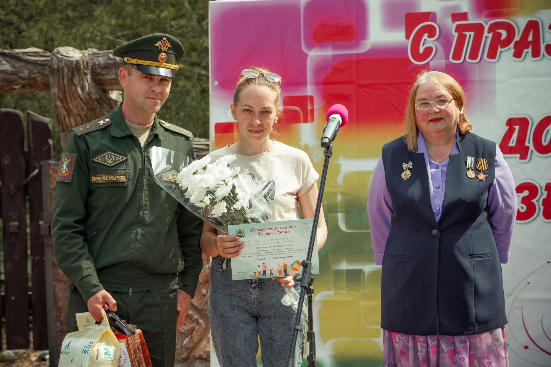 Поздравительный адрес «Многодетная семья-будущее России», цветы и подарки получили семьи Максима Михайловича и Марии Анатольевны Солдацковых, Романа Васильевича и Екатерине Валерьевне Липовых, Александру Николаевичу и Мрине Алексеевне Чухиных, Александру Игоревичу и Анастасии Викторовне Ивановых, Владимиру Геннадьевичу и Евгении Вячеславовне Поповых, Юлии Владимировне Играевой, Максиму Александровичу и Татьяне Викторовне Власенковых. Епархиальный социальный центр «Рождественский» — стал спонсором муниципальной акции «Многодетная семья-старт в будущее».