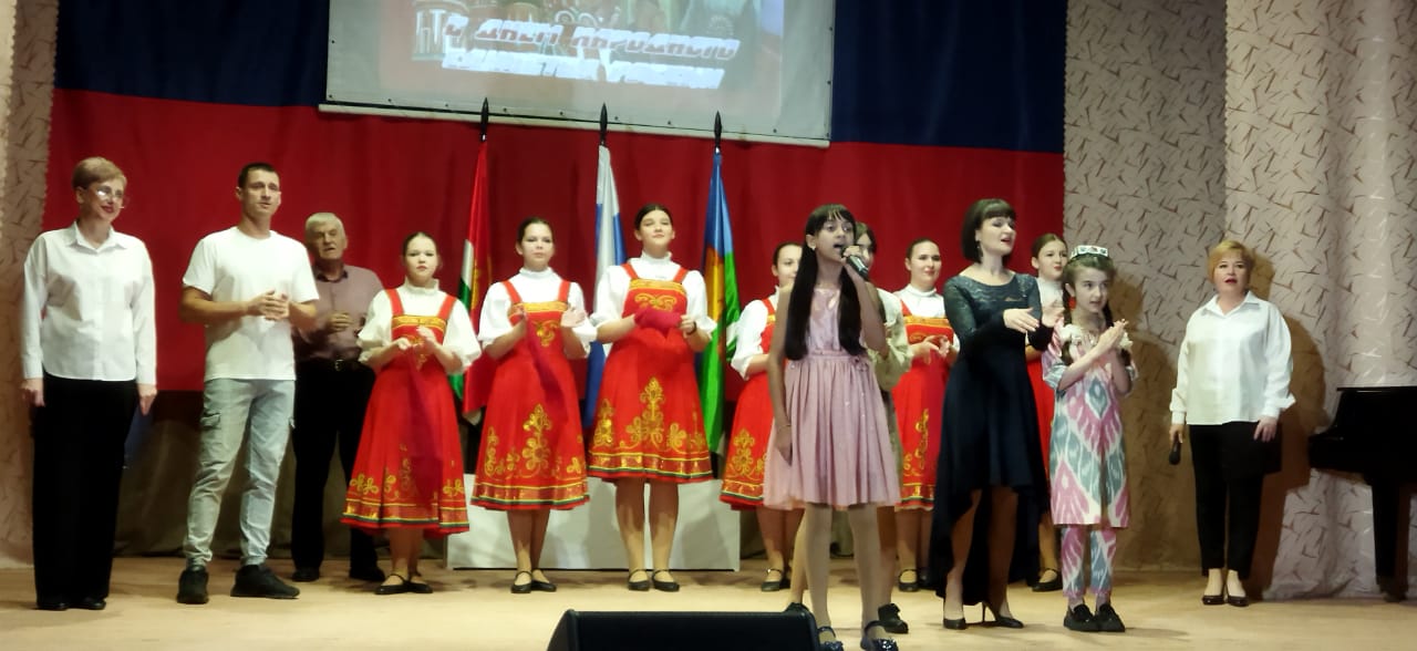 Торжественно и празднично было в зале, ведущие рассказали о том, что ополчение Минина и Пожарского объединяло разных людей, в том числе разных исповеданий, но духовным символом этого ополчения стал образ Казанской иконы Божией Матери. Поэтому православные люди, прославляют в этот день Покровительницу нашего Отечества Пресвятую Богородицу. На мероприятии читали стихи, пели песни и танцевали народные танцы и люди были очень воодушевлены идеей сплочения.