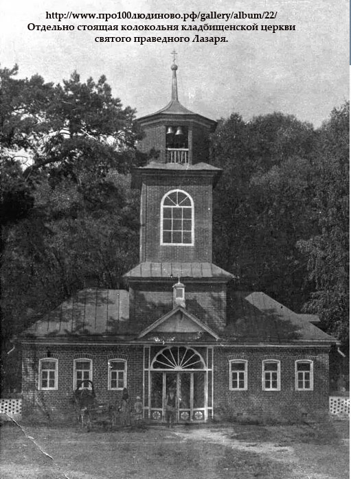 В 1826 году промышленник Иван Акимович Мальцов построил в городе Людиново церковь в честь праведного Лазаря Четверодневного. Деревянный храм с такой же колокольней находились на городском кладбище. С 1939 по 1944 год храм был закрыт. Когда богослужения возобновились, довольно продолжительное время Лазаревский храм был единственным в городе пристанищем для верующих.