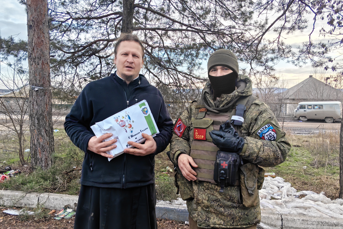 Праздничный груз при участии Управления Инженерных войск ВС РФ, Воронежской епархии и группы волонтеров доставил насельник монастыря иеромонах Макарий (Комогоров).