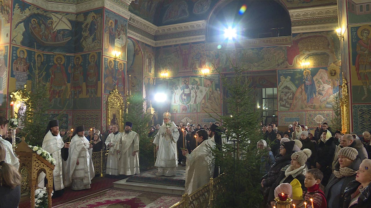 В храмах Русской православной церкви в 70 странах встретили Рождество Спасителя Иисуса Христа. Праздничные богослужения прошли и в храмах и монастырях Калужской митрополии. Как и каждый год, больше всего верующих в Областном центре пришло в Троицкий Кафедральный Собор.