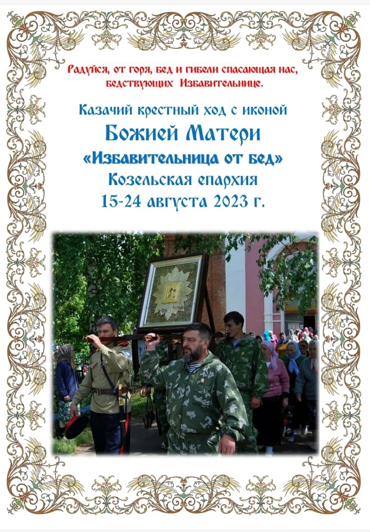 Следование Крестного хода с иконой Божией Матери «Избавительница от бед» по Козельской епархии. август 2023 года.