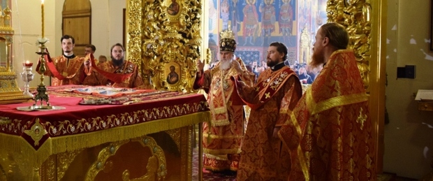 Его Высокопреосвященству сослужили иерей Максим Лихонин - ключарь собора, иеромонах Феофан (Сурин), иеромонах Херувим (Левин), протодиакон Алексий Хамтеев, протодиакон Сергий Комаров и диакон Максим Тихоцкий.