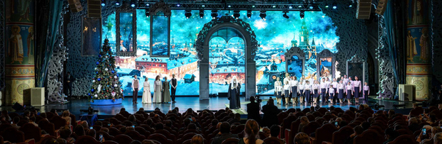 В начале был представлен пролог праздничного представления «Песня звезд», в котором участвовали ученики воскресной школы Храма Христа Спасителя и артисты спектакля «Тайна старого зеркала» (организатор представления — продюсерский центр «Интербал»).