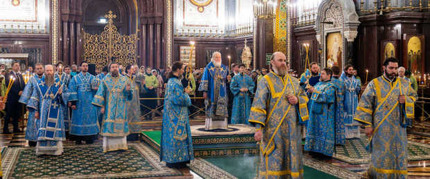 Святейший Патриарх Кирилл совершил утреню с чтением акафиста Пресвятой Богородице в Храме Христа Спасителя