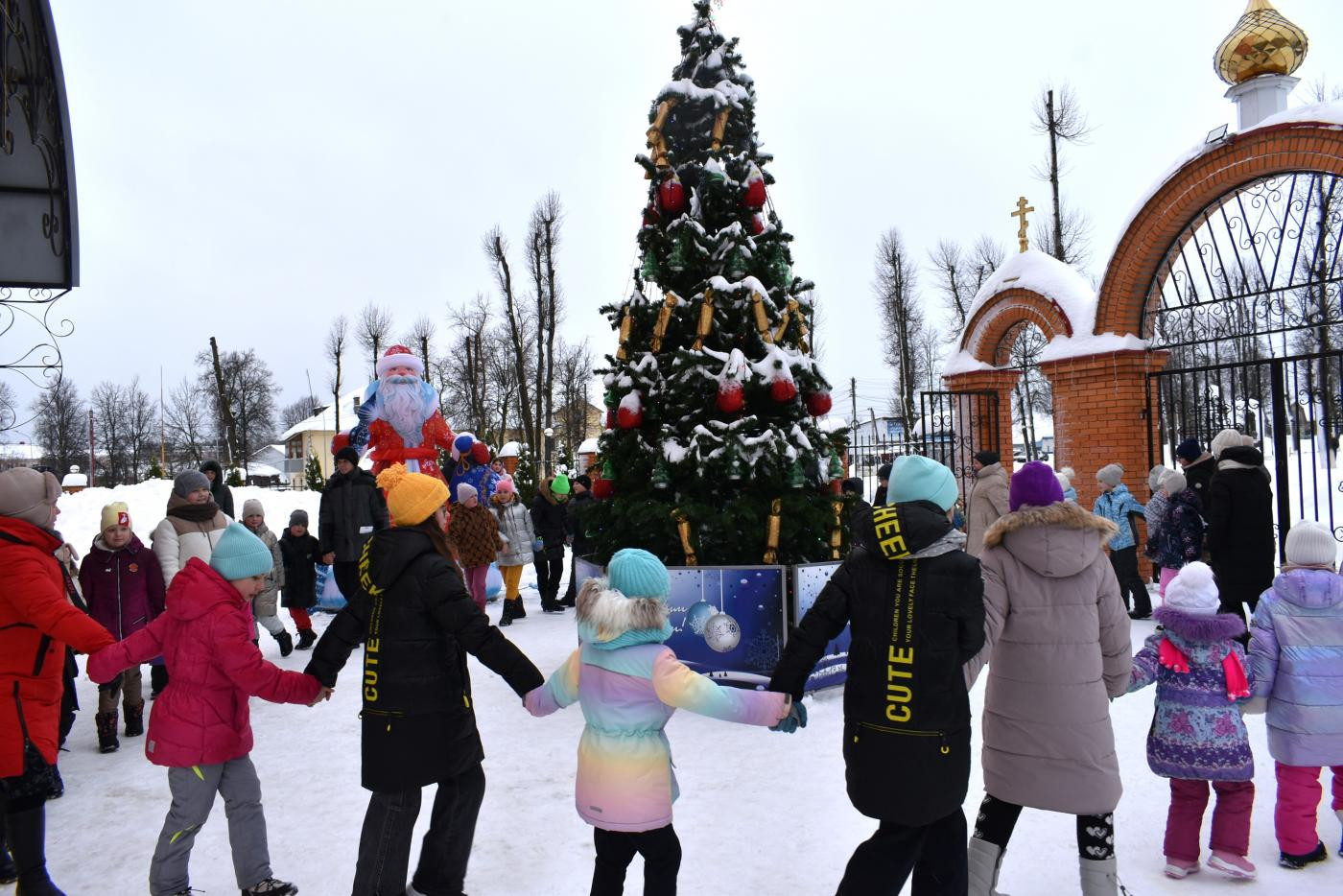 На территории храма была установлена новогодняя ель, украшенная игрушками, а рядом с ней – ростовые фигуры Деда Мороза и Снегурочки, сообщает «Весть». Ведущая праздника, руководитель Воскресной школы матушка Анастасия Рябова, подготовила для детей насыщенную игровую программу с заводными танцами, хороводами, викторинами и конкурсами.