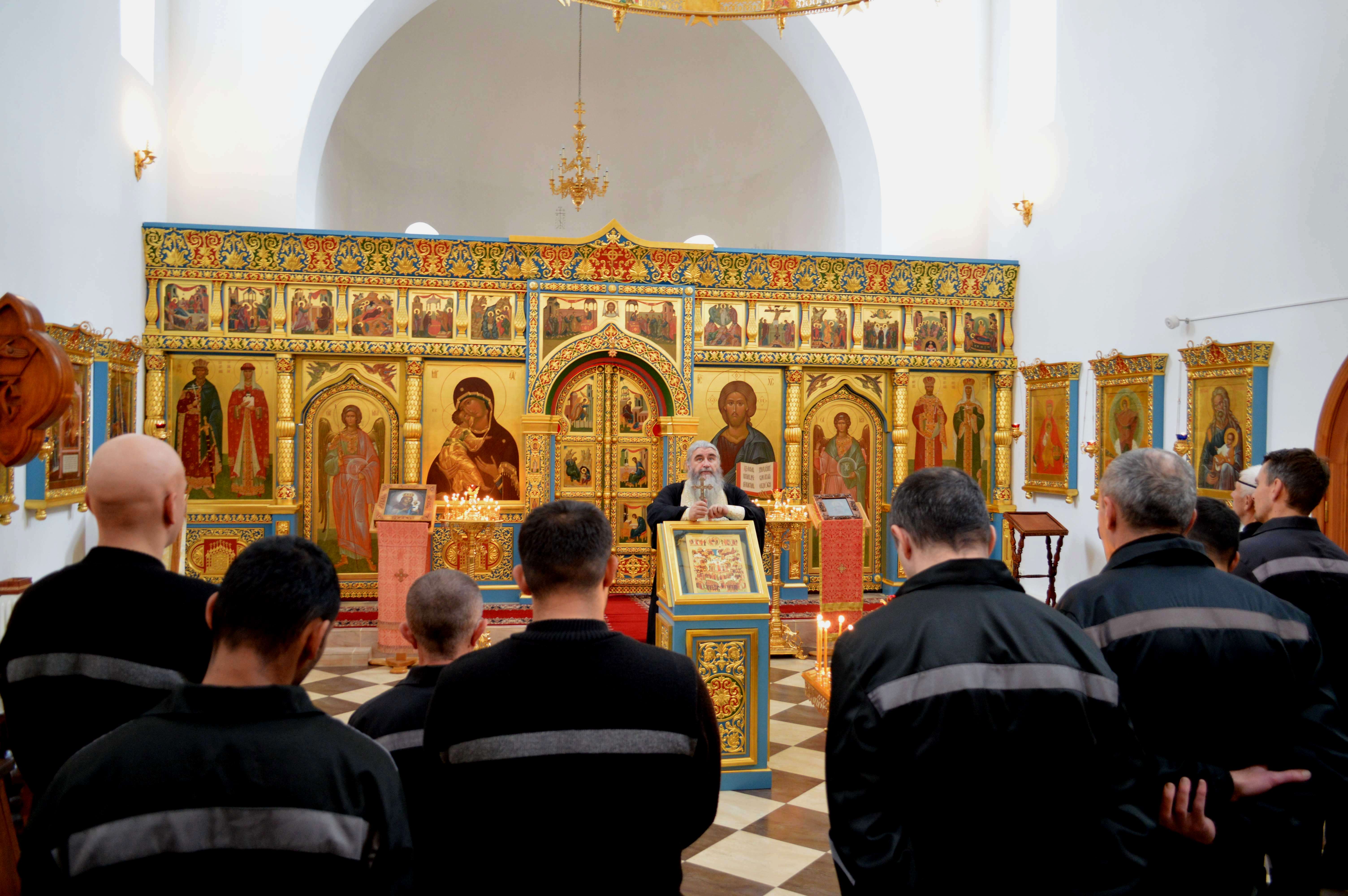 В храме «Всех святых на земле Российской просиявших» ИК-5 УФСИН России по Калужской области священнослужители Свято-Введенской Оптиной Пустыни провели Божественную Литургию,