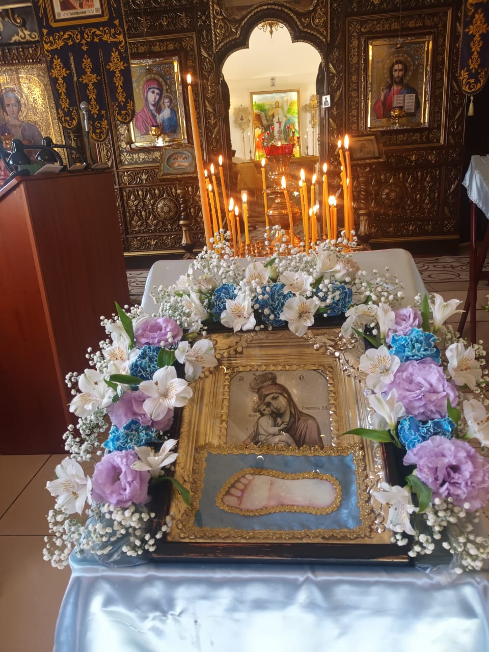В Свято-Лазаревском храме также хранится икона, на которой изображен отпечаток стопы Царицы Небесной. Она находится на аналое на солее справа у иконостаса и выставляется для поклонения верующим в день празднования Почаевской иконы Божией Матери.