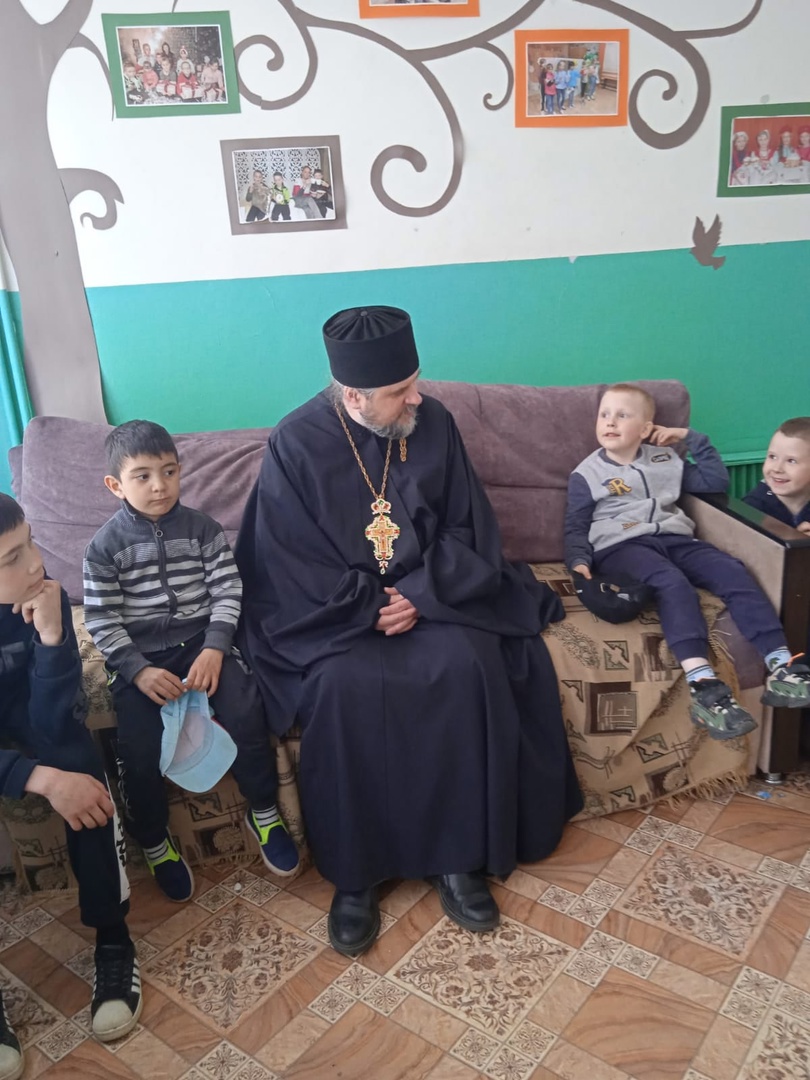 В рамках празднования дня защиты детей, 1 июня, настоятель Свято-Лазаревского храма города Людиново протоиерей Михаил Карпенко посетил детский центр «Чайка».