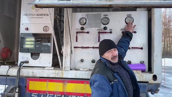 На территории муниципального автотранспортного предприятия Обнинска работает передвижной газовый заправщик.