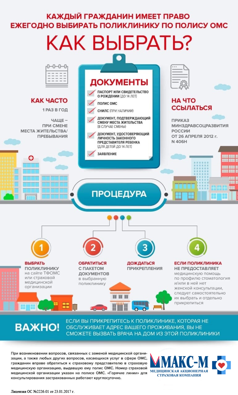 Филиал АО «МАКС-М» в г. Калуге напоминает застрахованным гражданам о том, что каждый гражданин РФ имеет право на выбор медицинской организации в рамках программы Государственных гарантий оказания бесплатной медицинской помощи. Это право закреплено в ст. 21 Закона РФ от 21.11.2011 № 323-ФЗ «Об основах охраны здоровья» (Закон № 323-ФЗ).