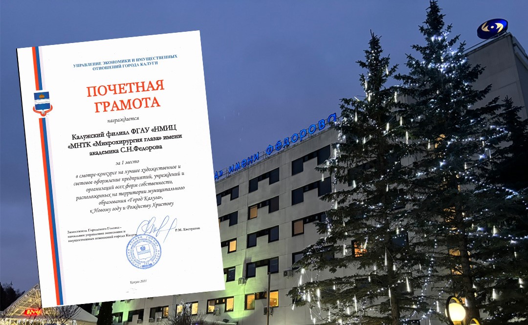 Калужский филиал МНТК «Микрохирургия глаза» имени академика С.Н. Фёдорова удостоен I места в смотре-конкурсе «На лучшее художественное световое оформление» среди всех предприятий и организаций города Калуги!