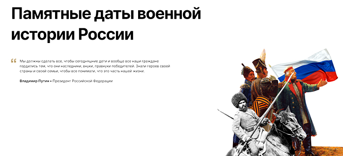 На портале Военно-исторического общества Памятные-даты.рф собраны самые яркие памятные события военной истории России начиная с XXII века. Здесь можно найти много малоизвестных фактов о нашей Родине. Интересно? Переходи в ЛЕНТУ ВРЕМЕНИ