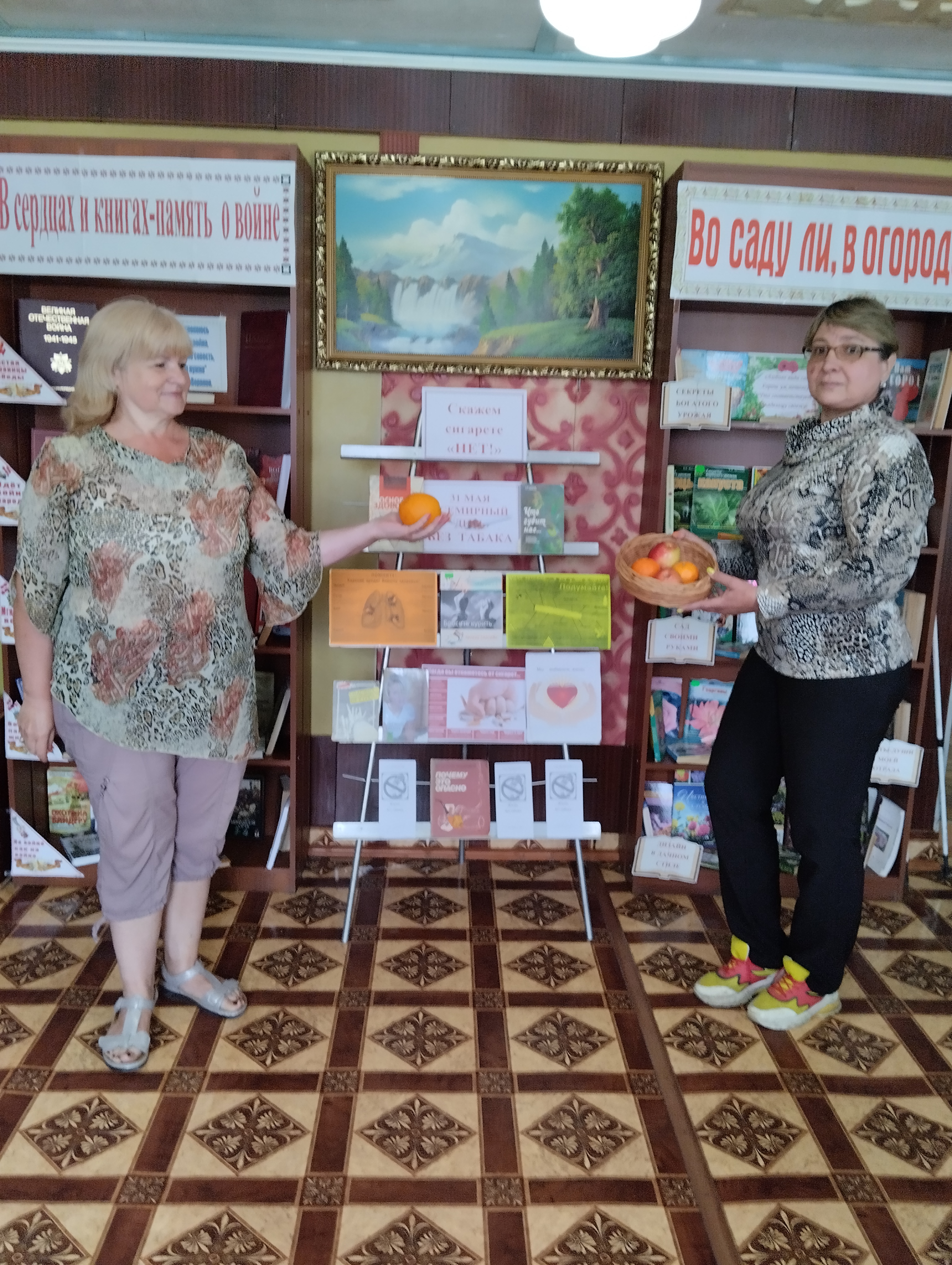 По предложению Всемирной организации здравоохранения 31 мая ежегодно проводится международная акция - Всемирный день без табака. Цель акции - формирование отрицательного отношения к табакокурению и пропаганда здорового образа жизни. В этот день сотрудники центральной районной библиотеки провели просветительскую акцию «Вот яблоко и апельсин – витамин. Бросаем вредный никотин!». Ее участниками стали люди всех возрастов.