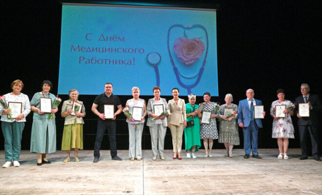 Медицинским работникам вручили ведомственные и региональные награды, состоялся праздничный концерт.