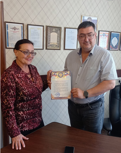 Председатель профессионального союза медицинских работников РФ Домников А.И. отметил работу четырёх сотрудников нашей ЦМБ №2.