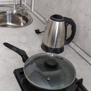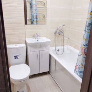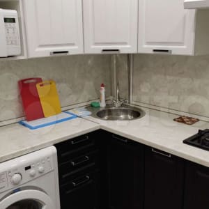 Кухня оборудована всей необходимой бытовой техникой (холодильник, микроволновая печь, электрический чайник, стиральная машина ) и посудой для приготовления пищи. В санузле современная плитка, новая сантехника.