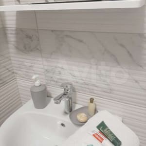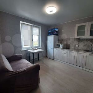 Есть все необходимое для проживания. В комнате находится угловой диван с двуспальные местом, шкаф, телевизор, холодильник, стиральная машина, микроволновая печь, электрический чайник.