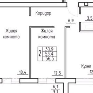 - Комнат в квартире: 2