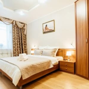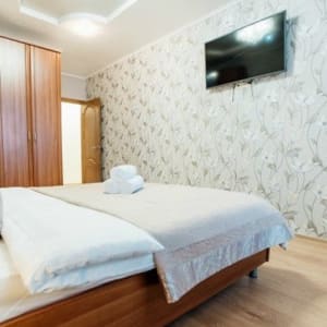 Eсть все необходимое для проживания. В комнате находится двуспальная кровать с ортопедическим матрасом, шкаф, прикроватные тумбы и ЖК-телевизор. В гостиной располагается двуспальный диван, односпальный диван-софа, ЖК-телевизор, стол для работы. 2 полноценные изолированные комнаты, раздельный санузел.