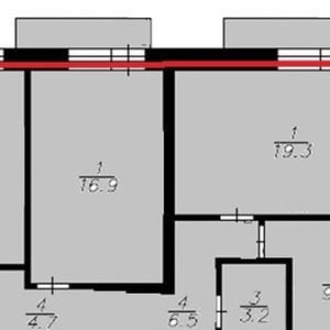 В продаже 3-комн. квартира 76.3 кв.м. с раздельными комнатами 16,9 кв.м., 19.3 кв.м. и 9.3 кв.м. Кухня 11,8 кв.м., два совмещённых с/у, два балкона.