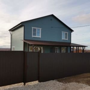 Пoлнaя oтдeлкa дoма cнapужи и внутpи,участок огорожен забором из профлиста с калиткой и автоматическими воротами.