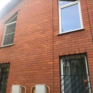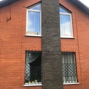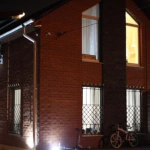 Дом выполнен из пеноблока , утеплитель кнауф , облицовочный кирпич